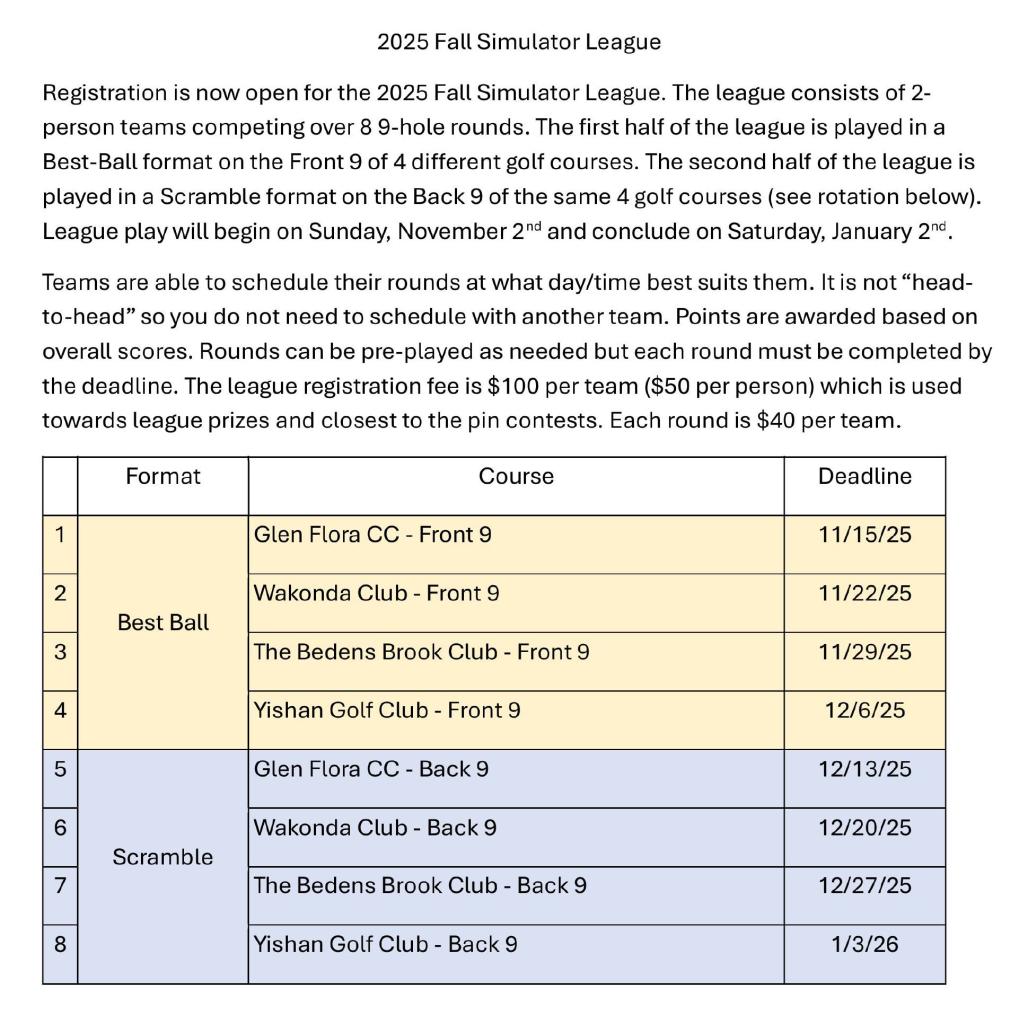Simulator Leagues – Fall 2025 League Starts in early November, get your first round in by November 15th!!!
